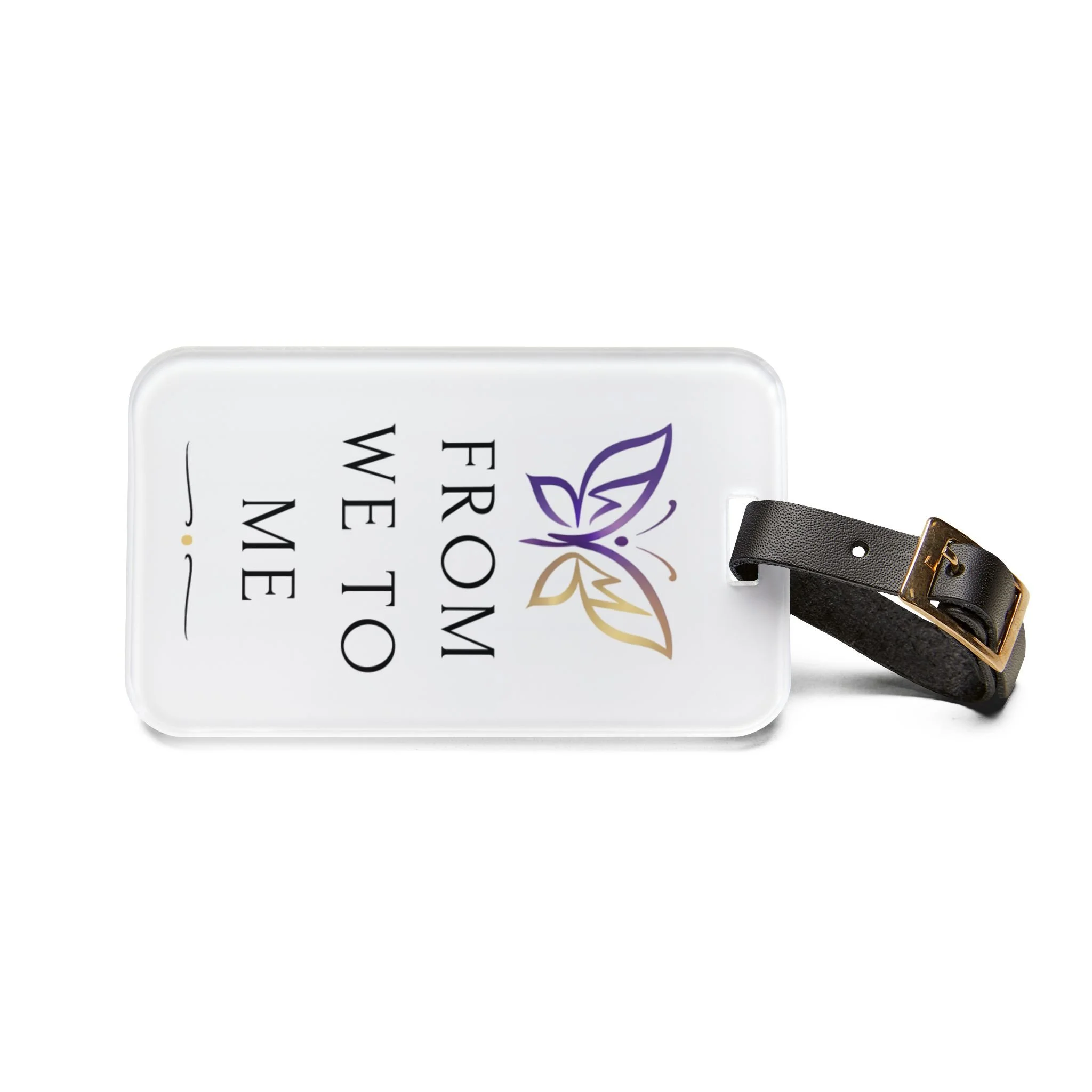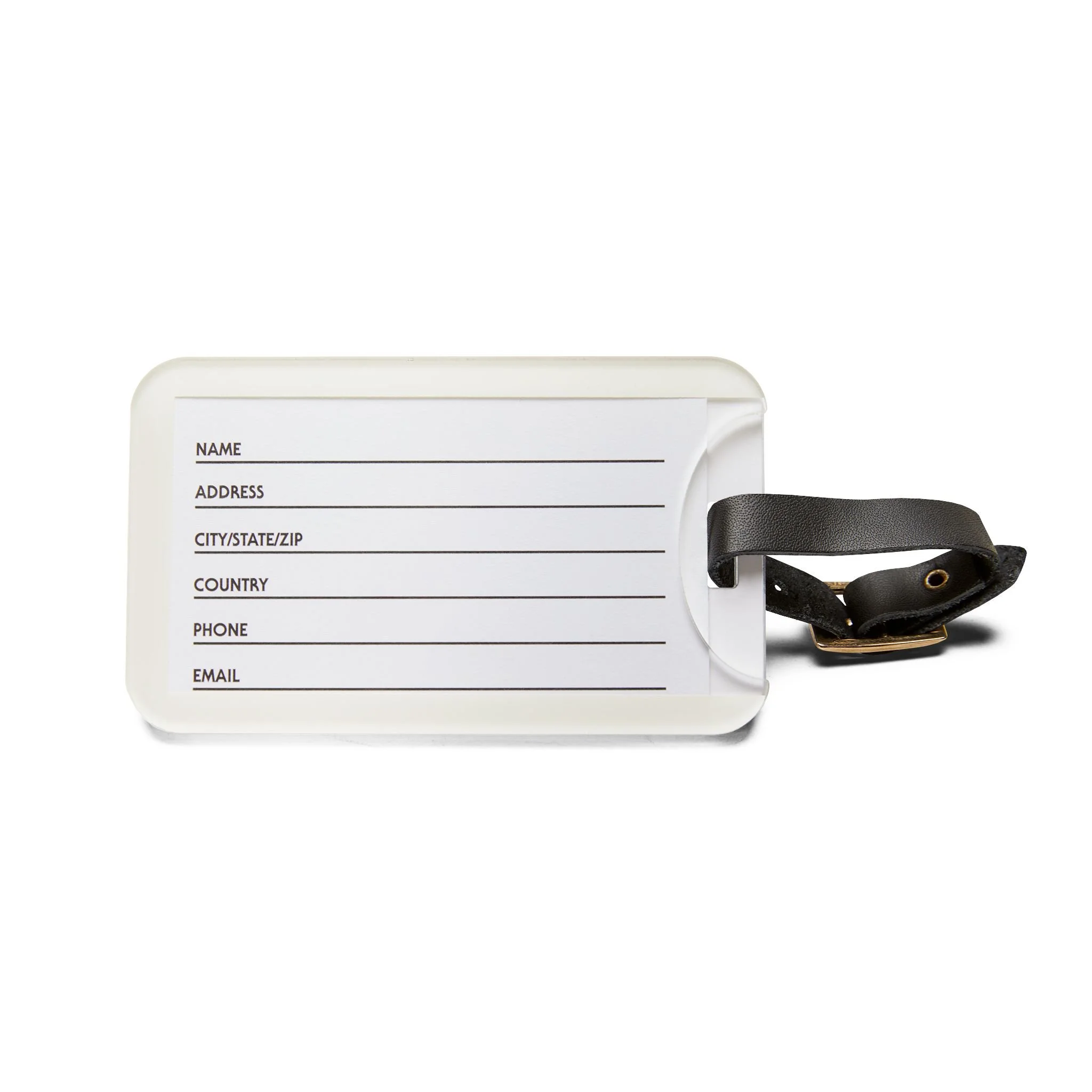 Our acrylic luggage tags come with a business card insert on the back where people can enter their contact information. They're super lightweight, so that they won't add any weight to baggage allowance. Each tag comes with a durable leather strap.